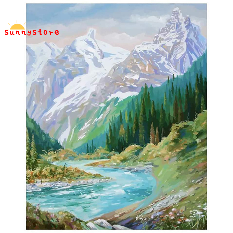 ☆Paint By Numbers For Adults, DIY Canvas Oil Painting Kit Acrylic Painting Kit For Kids Adults Snow Mountain | Shopee Philippines